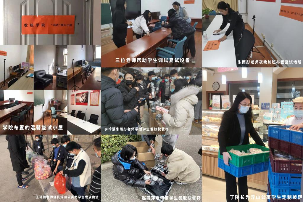 為保證2022屆畢業生考研復試工作順利進行,老師們積極協調在勵行樓和浮山公寓布置了十間“試試順心”復試小屋,購置了后置機位三腳架,根據復試時間段,制定合理有效預約制度。輔導員老師每天早晨在站點接到從浮山公寓跨園區來復試的學生,安排好復試后,中午和傍晚再陪同送回乘車點交接,中間還不忘叮囑“吃完飯再回去”。學院為浮山公寓園區的男生們送去了瓜果,同時也送去了一片牽掛和心意。