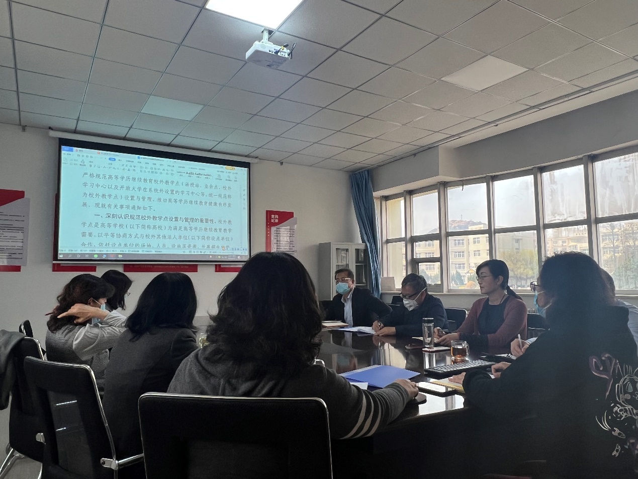 新聞網(wǎng)訊 4月21日下午,應(yīng)用技術(shù)學(xué)院黨委在行正樓310會(huì)議室召開理論學(xué)習(xí)中心組(擴(kuò)大)會(huì)議,專題學(xué)習(xí)教育部辦公廳《關(guān)于嚴(yán)格規(guī)范高等學(xué)歷繼續(xù)教育校外教學(xué)點(diǎn)設(shè)置與管理工作的通知》精神。學(xué)院黨委書記宋佐東主持會(huì)議并講話,學(xué)院黨委副書記、院長(zhǎng)耿寶福,理論學(xué)習(xí)中心組其他成員、黨支部書記及相關(guān)科室負(fù)責(zé)人參加。