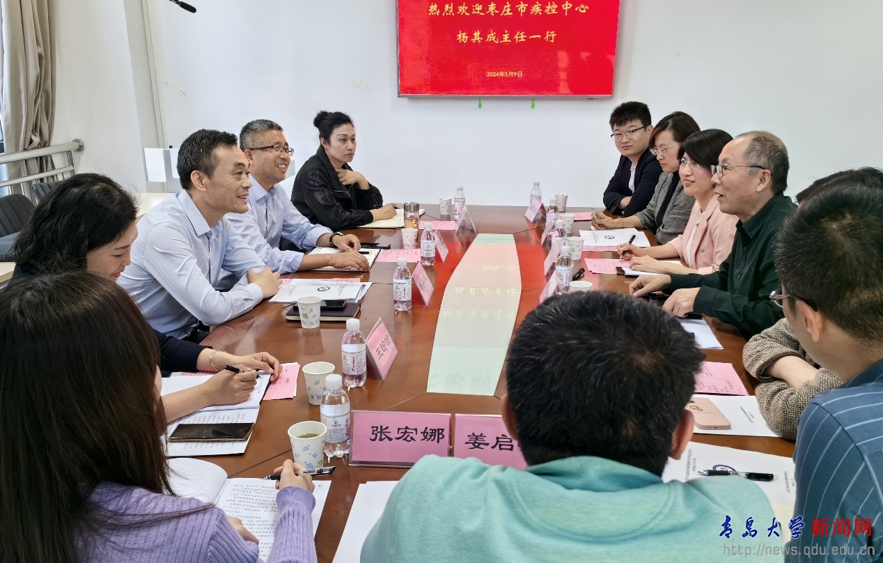 棗莊市疾病預防控制中心食品與環境衛生監測科副科長王盼盼,棗莊市預防醫學會秘書長吳冰;公共衛生學院黨委副書記華梁,副院長沈曉麗,院長助理唐敬龍、高田林,衛生毒理系副主任姜啟曉,青年泰山學者張宏娜等與會人員圍繞試點工作、學生就業、科研平臺、成果轉化與社會服務等工作進行了交流討論。