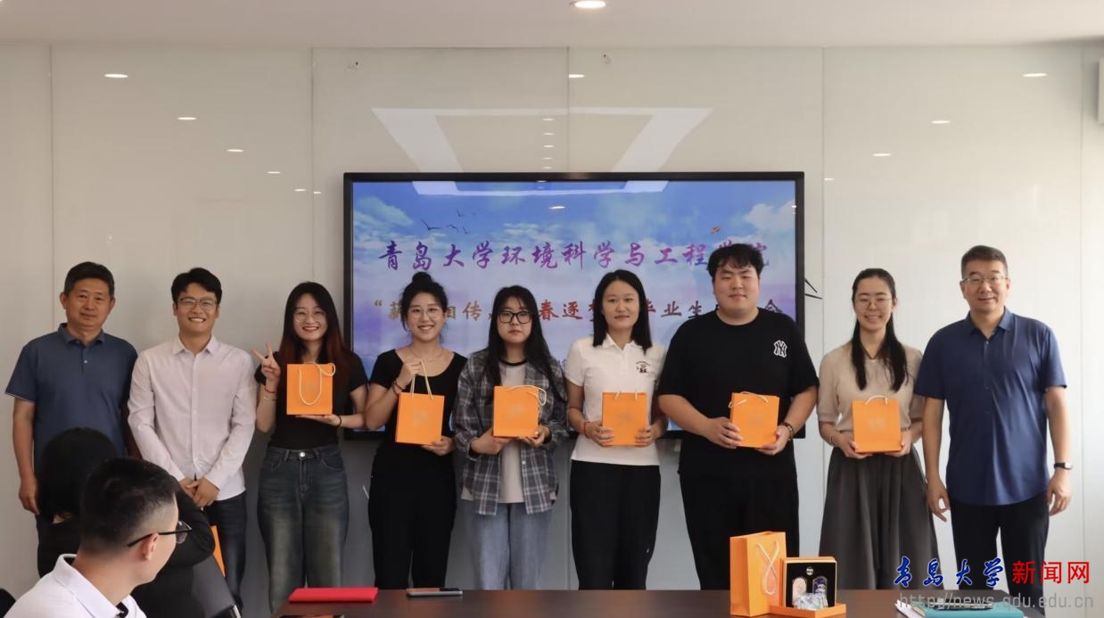 張作祥、佘希林為畢業生代表贈送畢業紀念品。學院為畢業生代表準備了青大定制書簽和校徽徽章,祝福大家“向鯨如海,一鹿繁花”,學院專屬吉祥物“綠水青山”希望大家心系母校,做祖國綠水青山的建設者和守護者。