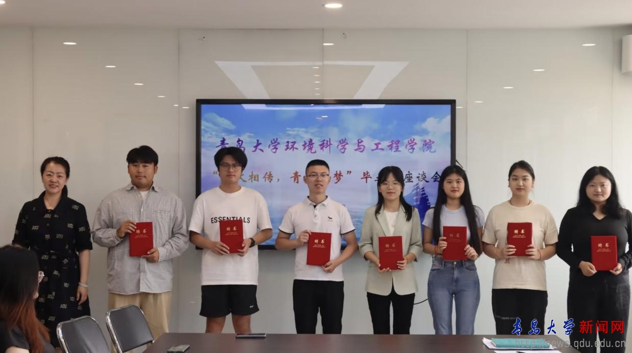 新聞網訊 近日,環境科學與工程學院在博觀樓429會議室舉行“薪火相傳,青春逐夢”畢業生代表座談會暨校友聯絡員聘任儀式。學院黨委書記張作祥、院長佘希林、黨委副書記孫竹媛、輔導員尹昊以及畢業生代表參加會議,會議由尹昊主持。