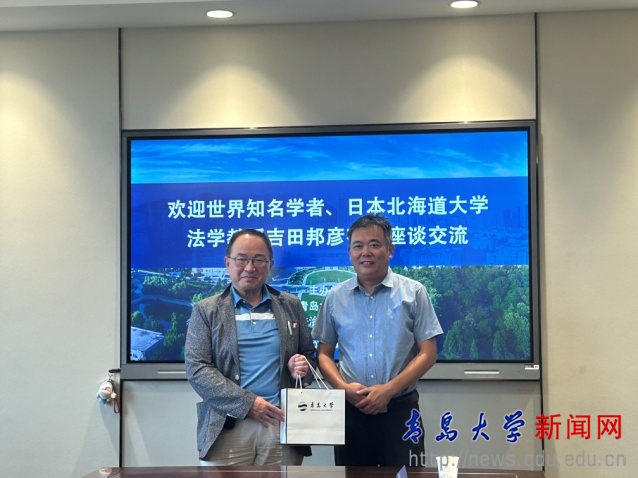 新聞網訊 8月17日上午,世界知名學者、日本北海道大學法學教授吉田邦彥在泰華商恒(青島)聯營律師事務所副主任欒靜及鄭海律師陪同下到青島大學走訪交流,青島大學法學院黨委書記李建新、院長蔡穎雯、副書記龐在辛、副院長馬衛東、研究生代表祖凌云共同參與接待。交流會議由蔡穎雯主持。