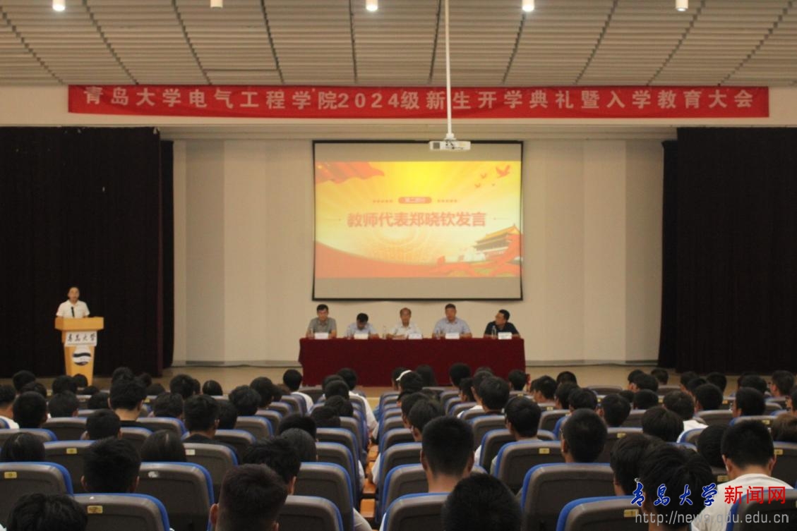 新聞網訊 9月28日晚,電氣工程學院在金家嶺校區圖文中心四樓報告廳舉行了2024級新生開學典禮暨入學教育大會。院黨委書記李敏,院長張智晟和學院其他黨政班子成員、各年級輔導員及2024級各班班主任以及2024級全體本科新生參會,大會由院黨委副書記薛希洪主持。