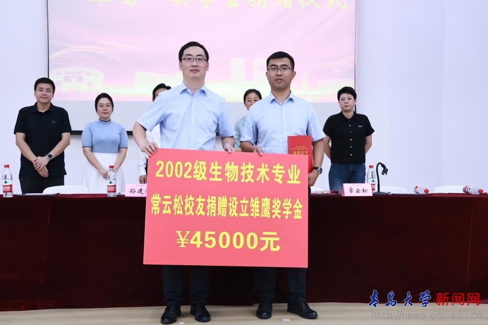 常云松校友曾于2021年在生命科學學院設立“雛鷹”獎學金,用于獎勵品學兼優的低年級學生,該項獎學金期滿后,他主動提出再續簽為期三年的獎學金,金額共計45000元,用于鼓勵更多的學弟學妹奮發上進。
