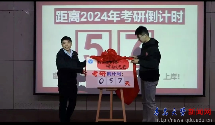 趙林與考研學生代表榮祥共同為考研倒計時揭牌。