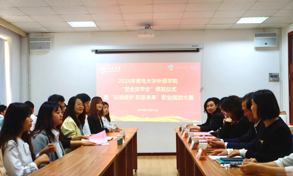新聞網(wǎng)訊 10月31日下午,外語學(xué)院2024年“罡金獎(jiǎng)學(xué)金”頒發(fā)儀式在博文樓312教室隆重舉行。青島罡金國際合作服務(wù)有限公司總經(jīng)理夏綱舉、人力部副經(jīng)理劉玉媛,學(xué)校合作發(fā)展處、學(xué)生工作處及外語學(xué)院負(fù)責(zé)人參加儀式。儀式由外語學(xué)院黨委副書記于苗主持。