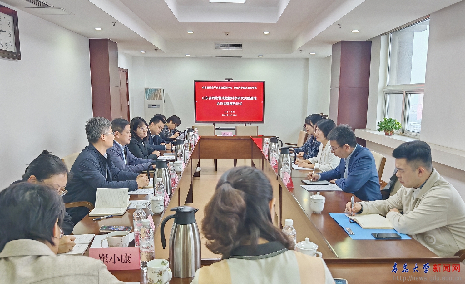 新聞網(wǎng)訊 山東省藥品不良反應(yīng)監(jiān)測(cè)中心與我校公共衛(wèi)生學(xué)院共建“山東省藥物警戒數(shù)據(jù)科學(xué)研究實(shí)踐基地”簽約儀式近日在山東省藥品監(jiān)督管理局順利舉行。山東省藥品監(jiān)督管理局副局長(zhǎng)林炳勇、省藥品不良反應(yīng)監(jiān)測(cè)中心主任李霞、相關(guān)業(yè)務(wù)科室負(fù)責(zé)人,以及我校公共衛(wèi)生學(xué)院黨政主要負(fù)責(zé)人、骨干教師代表共同出席簽約儀式。