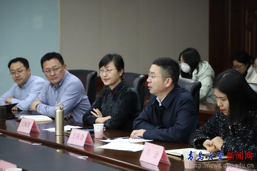 王慶金代表學院對鐵投集團李總一行表示熱烈歡迎,并從學院基本情況、學科特色優勢、人才培養特色等方面做了簡要介紹;李學謙介紹了山東鐵投集團基本情況,并表示未來將組織規劃實習項目,為學生提供深入了解企業的平臺,助力學生成長。
