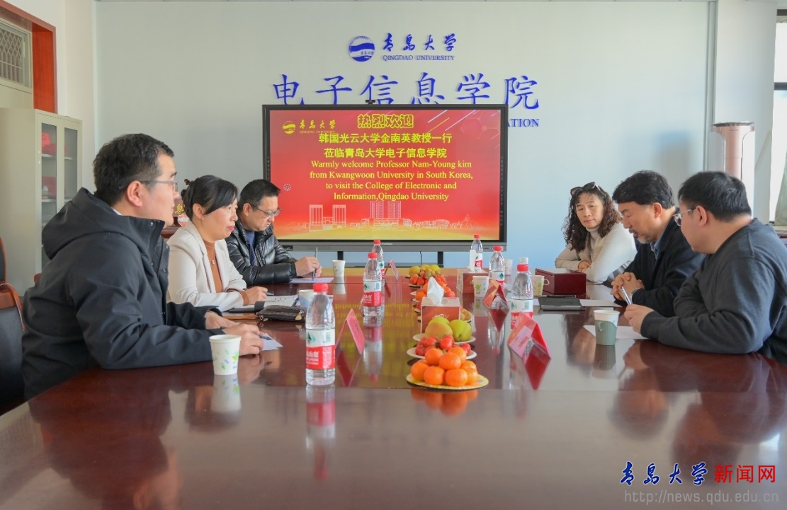 金南英向電子信息學(xué)院對(duì)雙方合作做出的努力表示感謝,對(duì)青島大學(xué)在微納傳感器、集成電路、人工智能等前沿領(lǐng)域所取得的研究成果給予高度評(píng)價(jià)。他表示,光云大學(xué)作為韓國(guó)頂尖的工科院校,近年來(lái)持續(xù)推進(jìn)國(guó)際合作戰(zhàn)略,致力于為學(xué)生提供更廣闊的發(fā)展空間,希望通過(guò)雙方資源互補(bǔ),在學(xué)生聯(lián)合培養(yǎng)、共建實(shí)驗(yàn)室等方面開(kāi)展深入合作,并共同探索產(chǎn)學(xué)研融合的創(chuàng)新路徑,為推動(dòng)電子信息領(lǐng)域的發(fā)展貢獻(xiàn)力量。