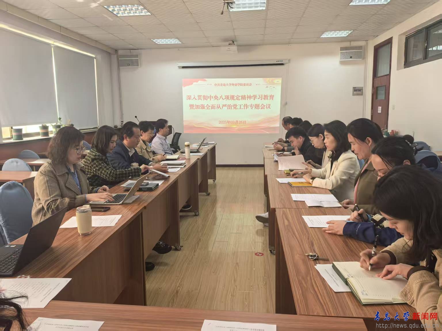 會議就貫徹落實《外語學院2025年度落實全面從嚴治黨主體責任實施方案暨工作分工》進行了部署,要求各黨支部、各教學系要結合深入貫徹中央八項規定精神學習教育,全面落實全面從嚴治黨工作任務。要圍繞責任分工,制定方案,明確責任,抓好落實,通過加強從嚴治黨,全面改進工作作風,強化黨風黨紀,加強師德師風建設,為推動學院事業高質量發展貢獻力量。