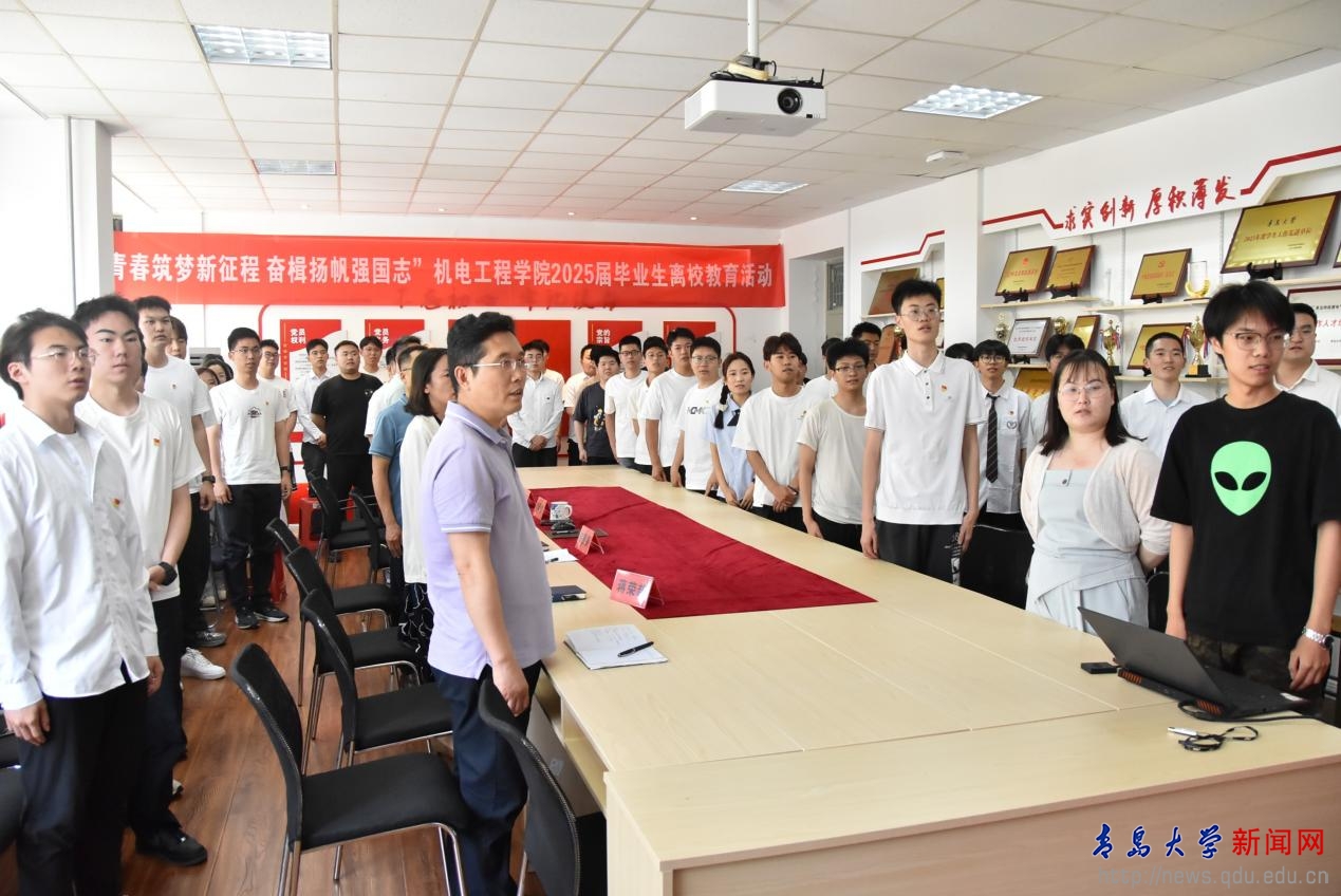 新聞網訊 6月3日下午,機電工程學院于誠思樓211會議室開展“青春筑夢新征程 奮楫揚帆強國志”2025屆畢業生文明離校教育活動。學院領導班子成員、系主任、班主任代表、畢業生代表參加活動。
