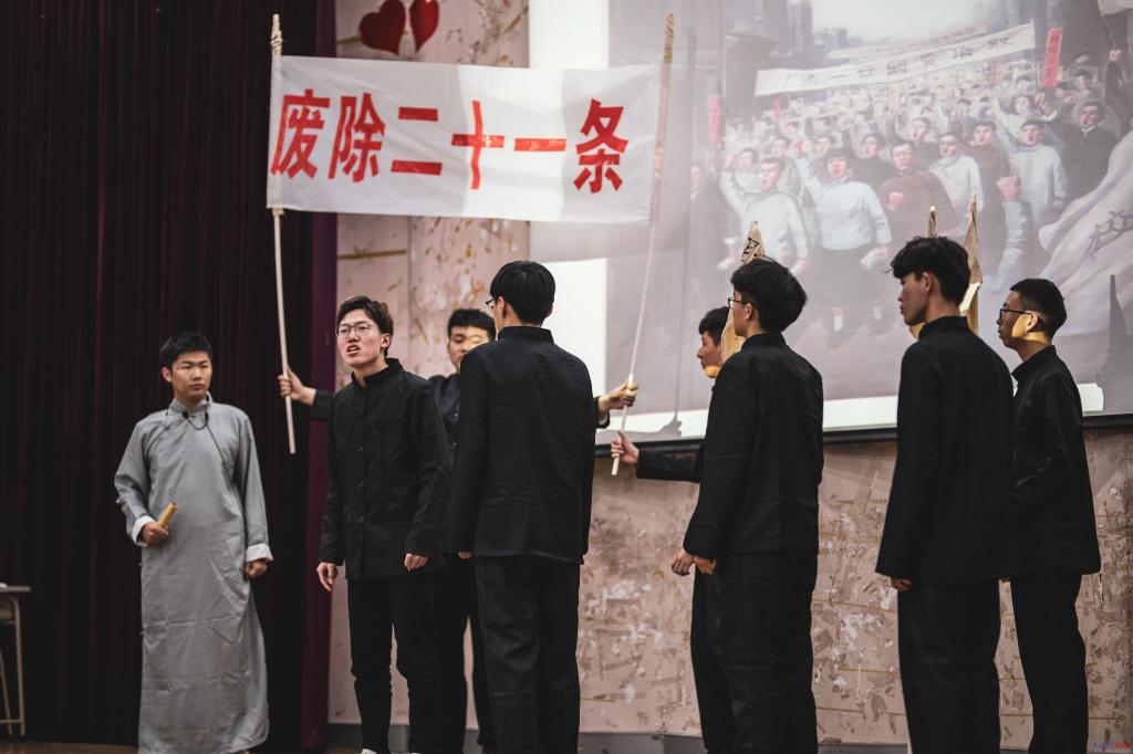 展演分為“戰(zhàn)艱難困苦永無畏”、“且英勇抗戰(zhàn)灑熱血”、“看改革開放譜新章”三個篇章,同學們歷時近兩個月辛苦排練的八部劇目,展示了共產(chǎn)黨人偉大的紅船精神和風暴下的五四精神;展示了戰(zhàn)爭年代里青年大學生也同前線的戰(zhàn)士一樣,都是志在救國的民族英雄;展示了改革開放以來,中國三十余年翻天覆地的變化,當珍惜幸福生活的來之不易。