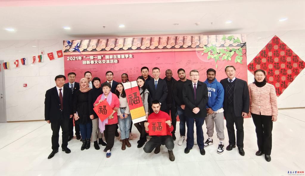 來自巴基斯坦、基里巴斯、孟加拉國、斯里蘭卡、烏茲別克斯坦等40余國在青來華留學生與民俗老師一起寫福字、貼窗花、包餃子、吃跨年飯,分享著中國傳統文化帶來的幸福和快樂,在濃濃的中國味道里,感知“中國式跨年”。我校烏克蘭留學生阿麗娜作為留學生代表與來自其他高校的斯里蘭卡、尼泊爾等國留學生分別向大家分享了自己本國的跨年文化和參加本次活動的感言。