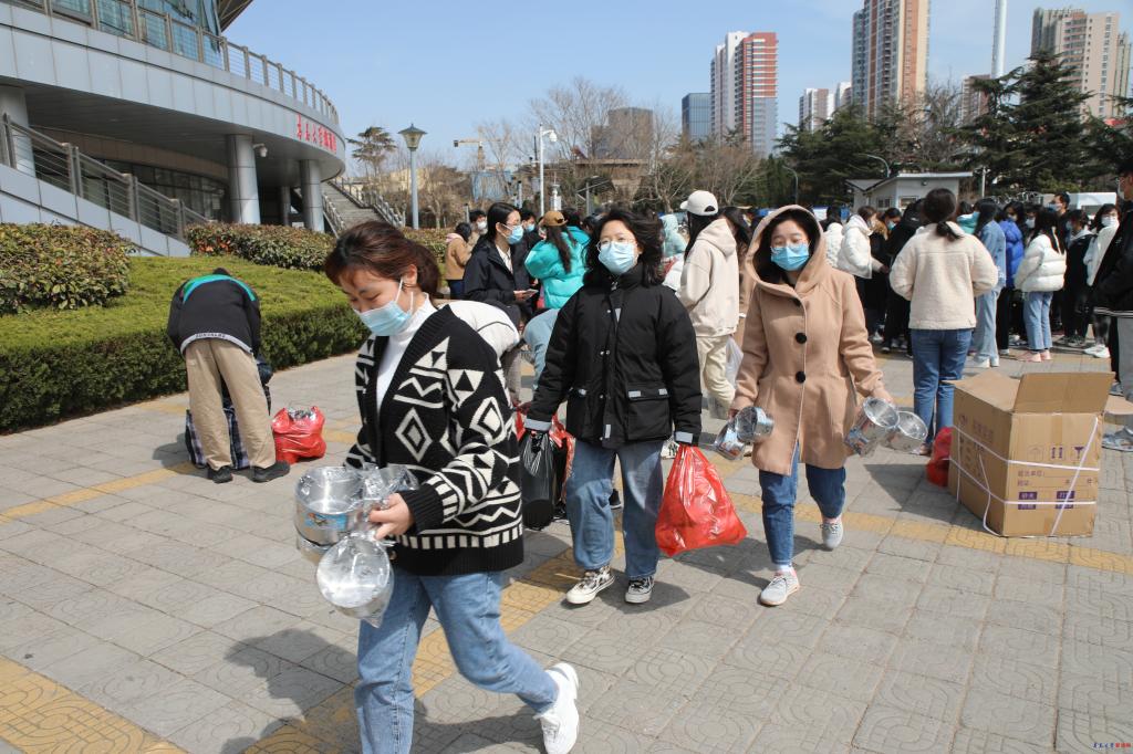 在浮山校區的體育館南側餐具發放現場,師范學院一位的大一女生在領到餐盒后高興地說:“很感謝學校給我們發了餐具,我們以后不需再用一次性餐具吃飯了,既保溫又衛生,還很環保。”生命科學學院的一位男生說道:“學校對我們學生生活很關心,我們也一定會響應學校號召,堅決配合學校做好疫情防控工作。”