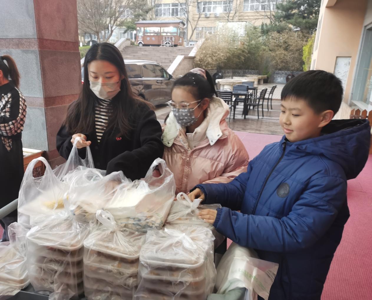 連日來,教師媽媽們不分晝夜在校園中、在學生中忙碌,一批少先隊小志愿者也跟隨媽媽的腳步,積極加入服務隊伍,為一線值班老師和學生志愿者送餐、搬運物資。