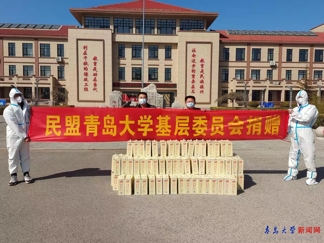 作為此次青島疫情的重災區,萊西受到了社會各界的廣泛關注,也深深牽動著青大民盟人的心。在主委青大附院徐巖副院長的帶領下,民盟青島大學基層委為萊西市姜山鎮中心中學捐贈價值5000元的食品禮盒,為處于疫情一線的學子們送去一份來自青大民盟的關愛和支持。民盟盟員們祝愿學子們早日平安返校,并送上“戰疫歸來更讀書,厲兵秣馬再起航”的寄語。
