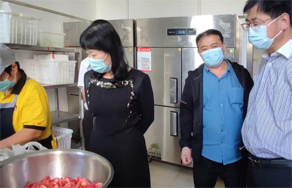在松山、浩園等餐廳的現(xiàn)場,劉彩云詳細查看了食堂庫房食品原料的儲存情況,冰箱內(nèi)禽肉、水產(chǎn)品、半成品等各類食品的分類存放;對食堂洗碗消毒設備的使用、公共餐具用具的洗刷和消毒流程等進行詳細查看和詢問;對食堂食品出售及工作現(xiàn)場的衛(wèi)生管理、廚房清潔與消毒等進行仔細檢查,對食品安全管理、食堂各類記錄、人員管理、防疫管理等進行檢查和督導。