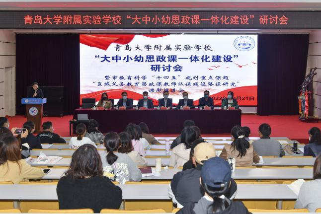 此次研討會是山東青大教育集團開展“大中小幼思政一體化建設”系列活動之一。為貫徹落實中共中央辦公廳國務院辦公廳《關于深化新時代學校思想政治理論課改革創新的若干意見》、教育部等十部門《全面推進“大思政課”建設的工作方案》等文件精神,教育集團依托青島大學優勢資源,發揮大學學術引領作用,以青島大學附屬實驗學校和幼兒園為基地平臺探索“大中小幼思政一體化建設”,構建一體化建設協同聯動機制,打造大中小幼一體化思政課程體系,推動大中小幼教師提高政治站位、學術站位和學科站位,切實增強德育教育培根鑄魂、啟智潤心的實效,做好立德樹人根本任務。為今后進一步開展嶗山區大中小幼思政課一體化建設、推動德育一體化建設、加強意識形態教育和核心價值觀教育等奠定良好基礎,帶動嶗山區思政課教師隊伍高質量發展。