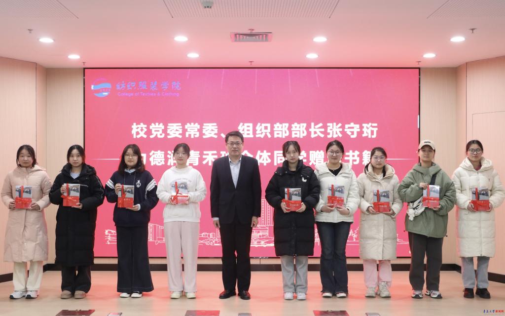 會(huì)上,紡織服裝學(xué)院院長(zhǎng)許長(zhǎng)海為張守珩頒發(fā)“德育導(dǎo)師”聘書(shū)。