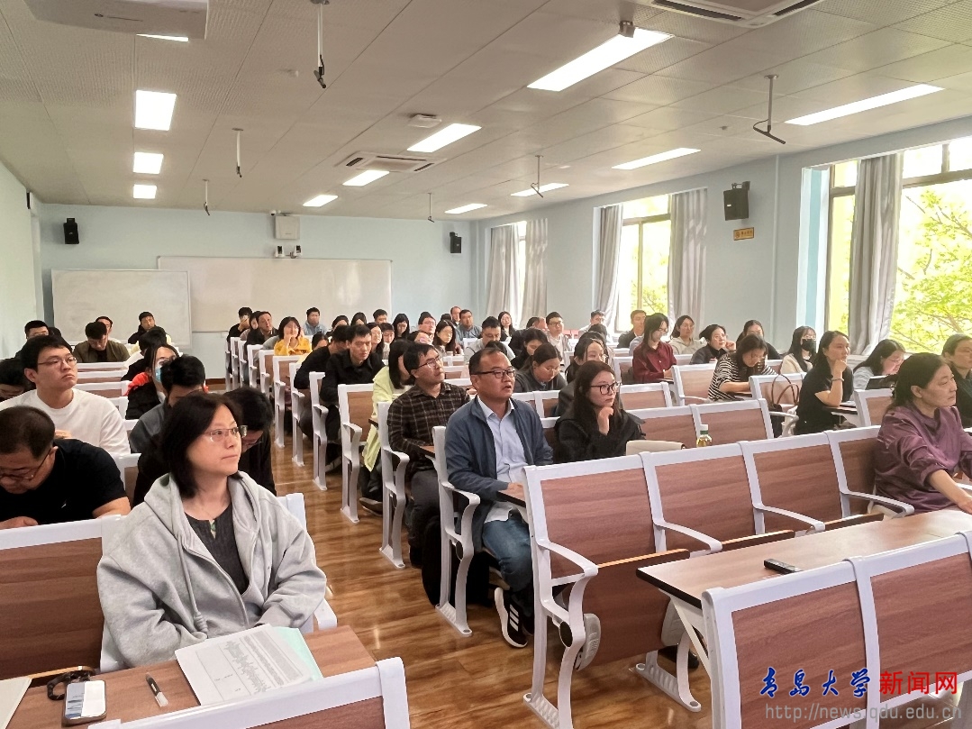 新聞網訊 4月24日下午,第七期新入職教師教學能力提升培訓班開班儀式暨首場報告會在博學樓202室順利舉行。教務處副處長耿慶匯以及70余位新入職教師參加會議,會議由校部機關第二黨總支書記、教師發展中心副主任王海青主持。