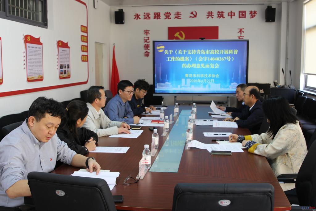 李強結合最新修訂的《中華人民共和國科學普及法》對《關于支持青島市高校開展科普工作的提案》進行了簡要說明。物理學院院長助理孫士家向市科協領導匯報了2024年度應用物理國家級實驗教學示范中心(青島市科普教育基地)的工作進展。隨后青島市科協科普部部長解玲代表市科協向李強的提案進行了詳細答復,并對近期市科協關于科普工作的政策和舉措進行了說明。李強表示對答復意見完全贊同,感謝市科協一直以來對青島大學和物理科學學院科普工作的支持,雙方一致形成提案的辦理意見。