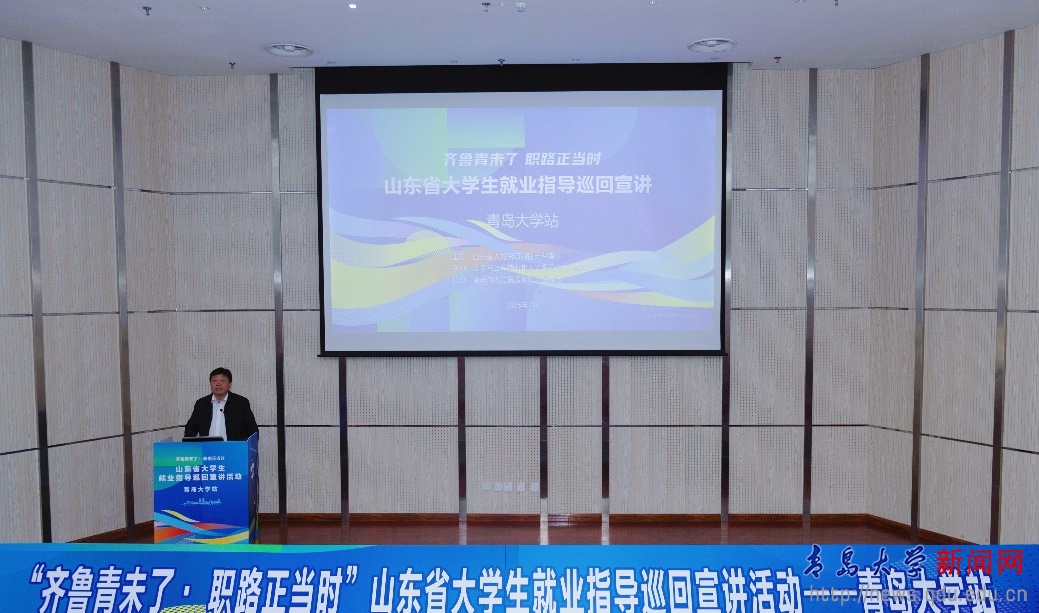 新聞網訊 近日,由山東省人力資源和社會保障廳主辦,山東省公共就業和人才服務中心和我校共同承辦的“齊魯青未了·職路正當時”大學生就業指導巡回宣講活動在浮山校區會議中心305成功舉辦。校黨委常委、副校長陳濤,山東省人力資源和社會保障廳就業促進處二級調研員張連軍、省公共就業和人才服務中心就業服務處職員(專業技術六級)劉容秀,青島市公共就業和人才服務中心五級職員張海勇,中國海洋大學就業創業指導與服務中心教師王圣丹出席活動,學校優秀校友代表、各學院畢業生輔導員及學生代表300余人現場參與。