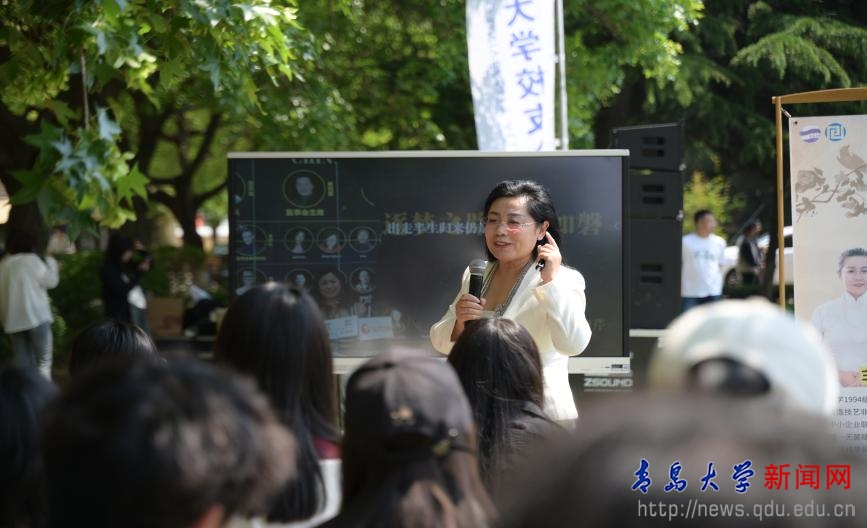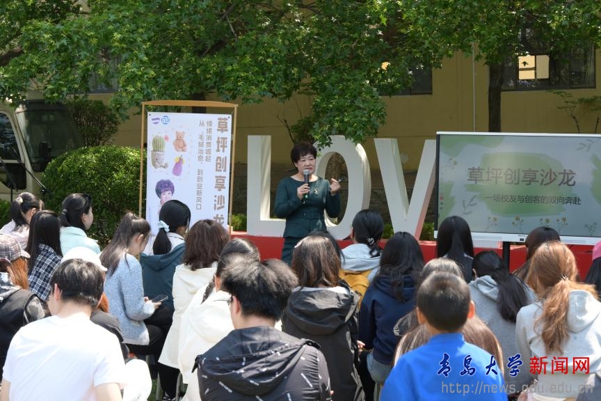 創業大咖與在校生們在草坪上圍坐暢談,交流創業感悟。青島睿海財智私董會教育咨詢管理有限公司創始人、紡織服裝學院1994級校友馮睿結合當前“毛絨治愈”的流行趨勢,解析了情緒消費崛起帶來的服裝、餐飲、文創等行業的創業新風口,并介紹了青島大學“大手拉小手”創業實踐項目,鼓勵在校生們主動抓住機遇、在實踐中磨礪自我。山東金勝宇科技集團有限公司董事長、師范學院94級校友徐清芹以青島大學校訓為引,分享了創業過程的突破創新與匠心堅守,她講到“用手只能做到,用心才能做好。創業路上沒有一帆風順,但只要心中有光,終能穿越黑暗。”