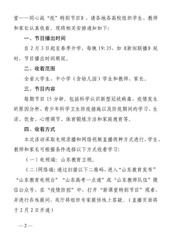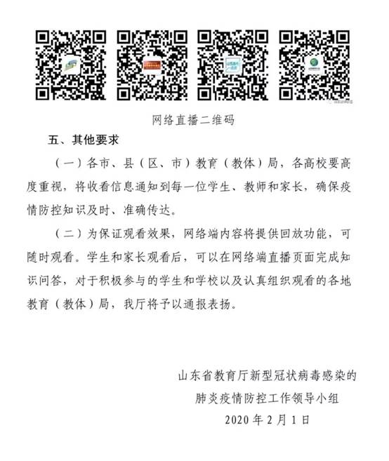 附:《山東省教育廳新型冠狀病毒感染的肺炎疫情防控工作小組關于組織收看疫情防控特別節目的通知》(魯教疫控組字[2020]5號)文件