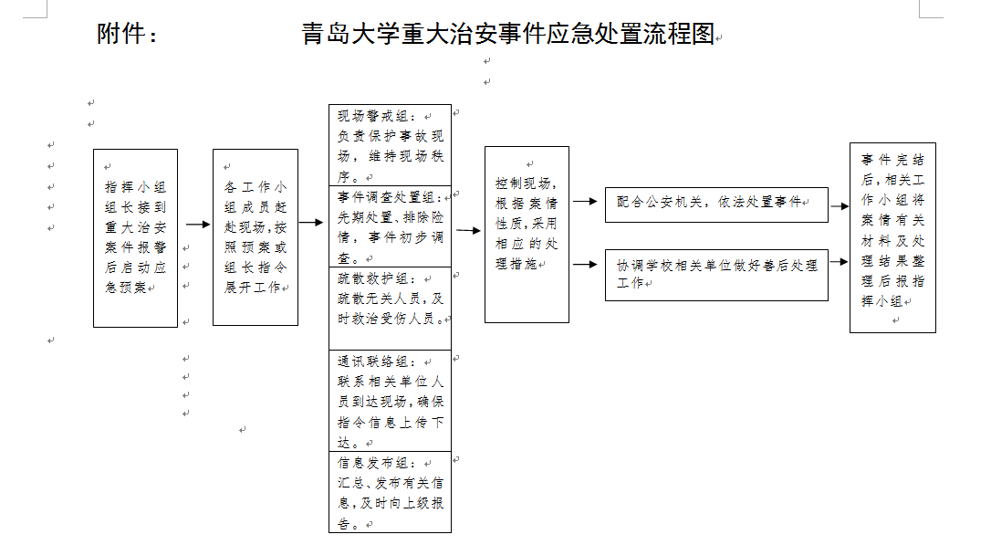 指揮小組安排人員協助配合相關學院和部門做好事件的善后處理,配合公安機關對治安案件的偵破工作,根據情況將調查、結案報告報上級有關部門。